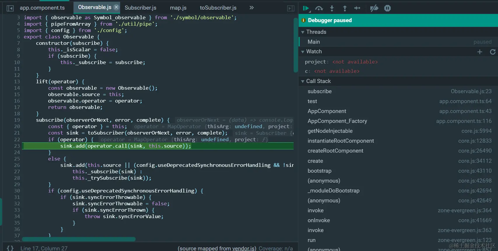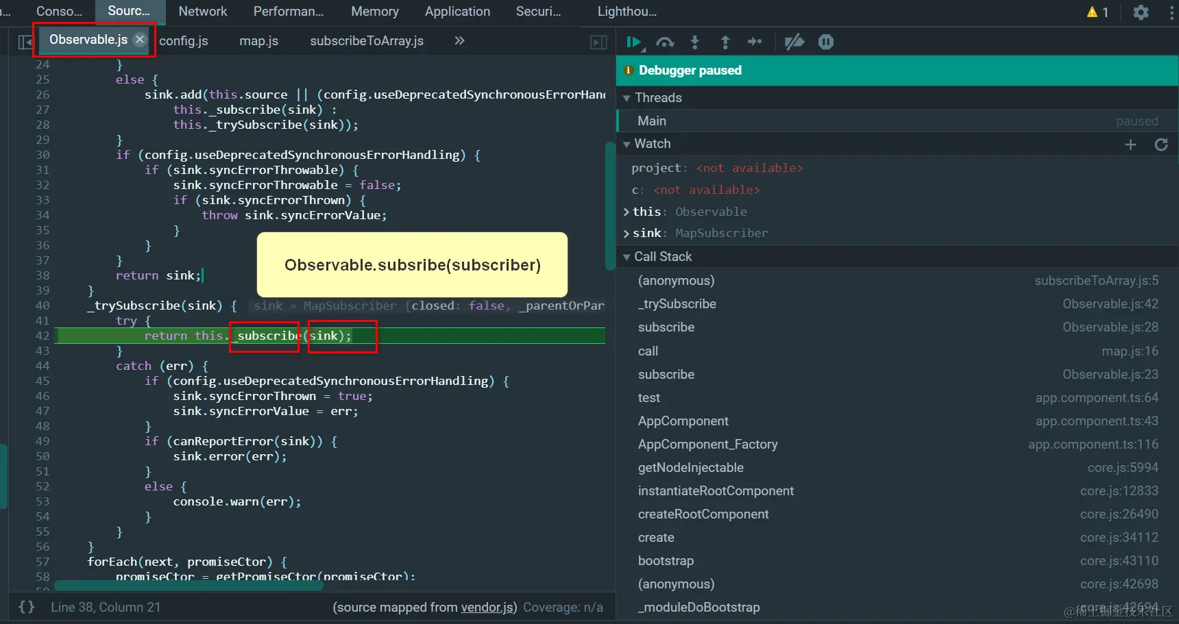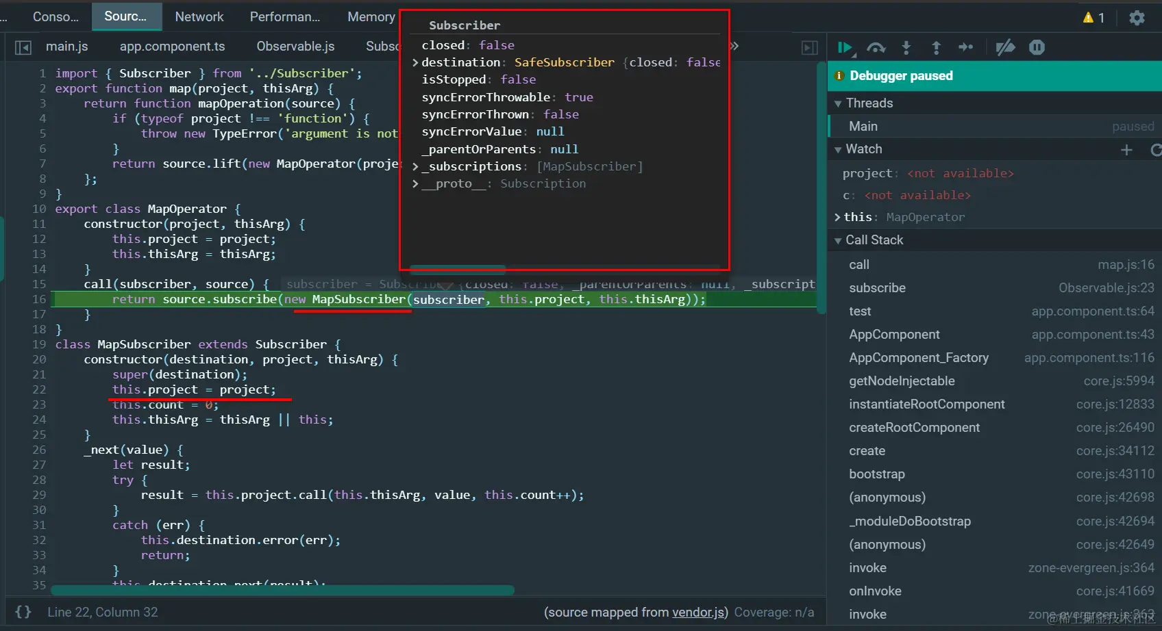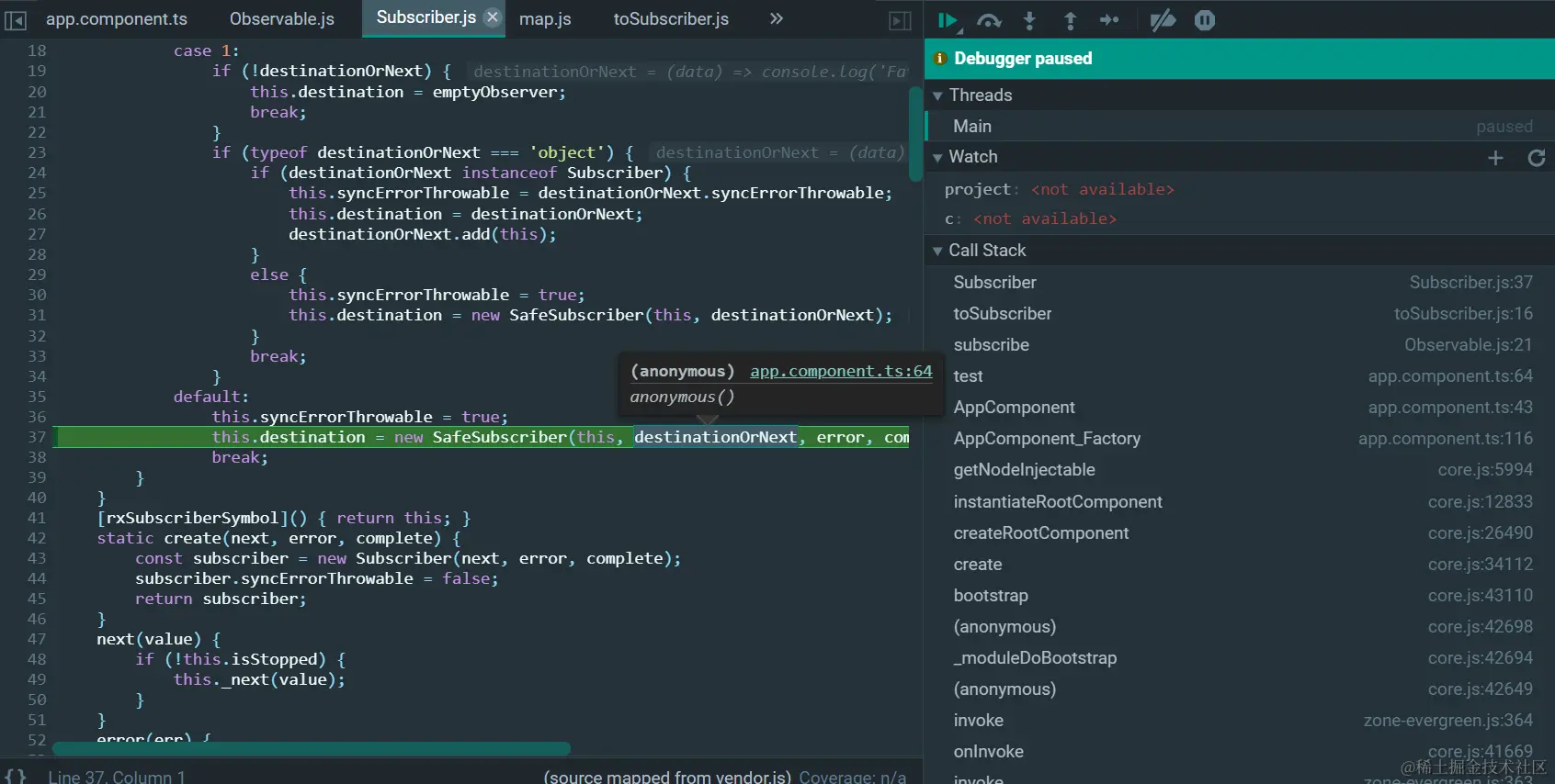 注意,此时我们执行subscribe的Observable对象,实际上是pipe操作返回的新Observable: