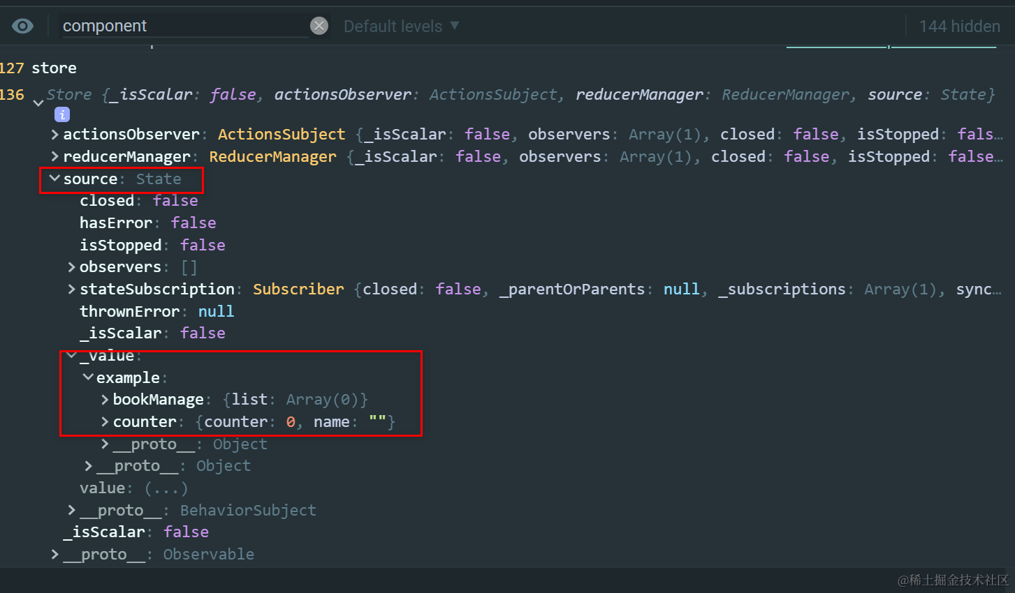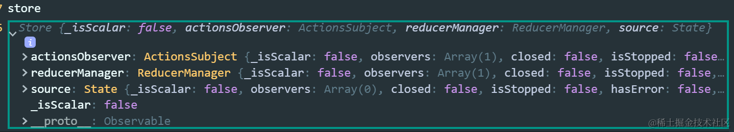ngrx注入到应用类构造函数里的store变量 已注销 2021-04-26 42 阅读1分钟 这个类型为Store<fromExample.State>的变量: 本质是个Observable: store的source字段的_value里,包含了两个state的初始值: 更多Jerry的原创文章,尽在:“汪子熙”: