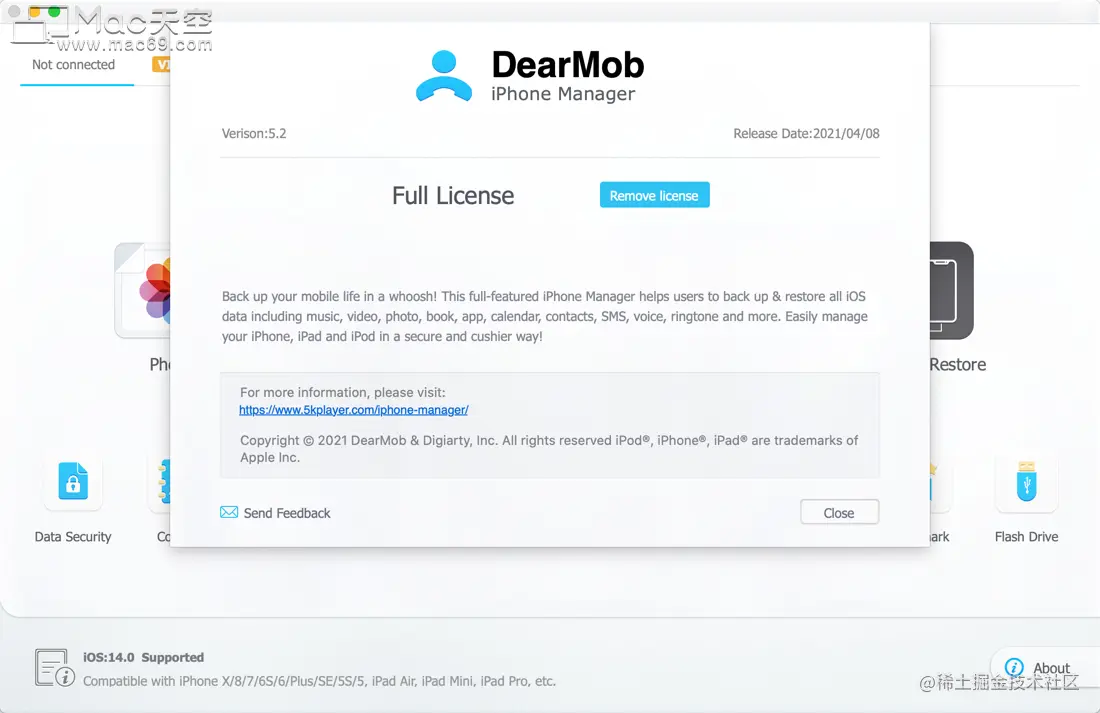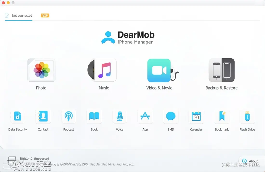DearMob iPhone Manager Mac是一款可以无需iTunes即可一键备份和还原iOS装置数据的iphone数据传输软件。DearMob iPhone Manager Mac激活版支持数据加密传输iPhone数据,能够百分百保障iPhone数据安全传输的工具!有了DearMob iPhone Manager Mac,就能够告别只有使用iTunes才能进行本地备份或者使用iCloud云端备份的情况。DearMob iPhone Manager Mac中文版支持一键完全备份或恢复通讯录、短信及iMessage、电子书、播客、日历、备忘录、手机已安装的APP等。