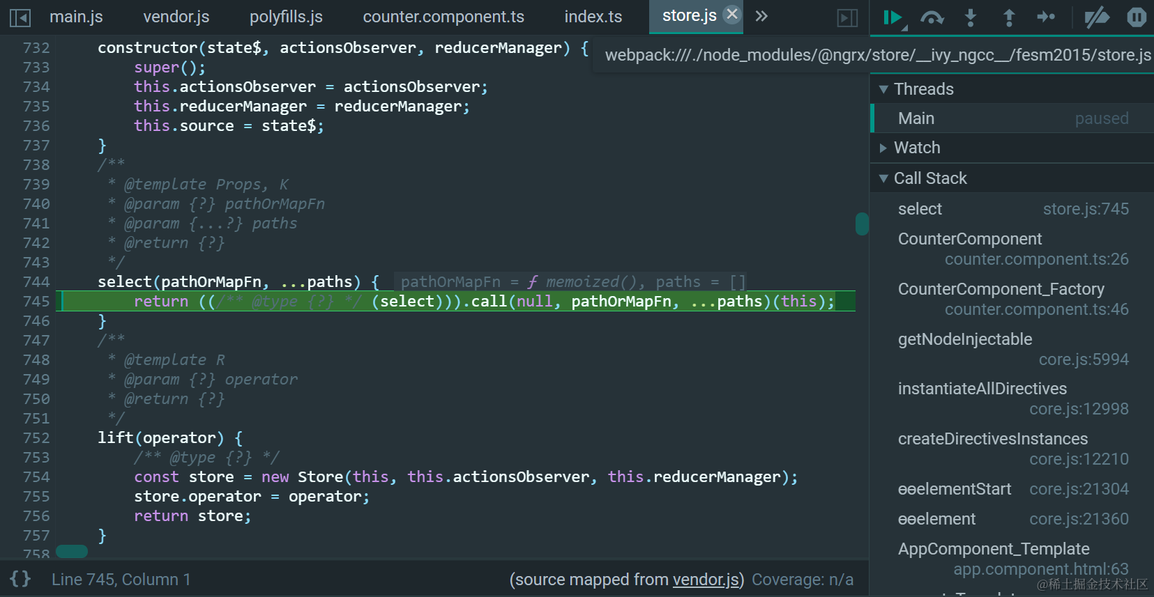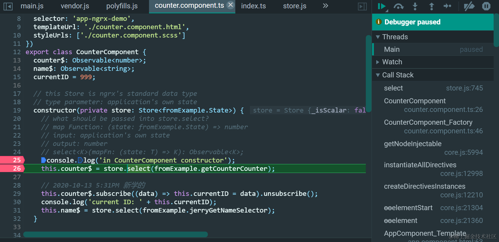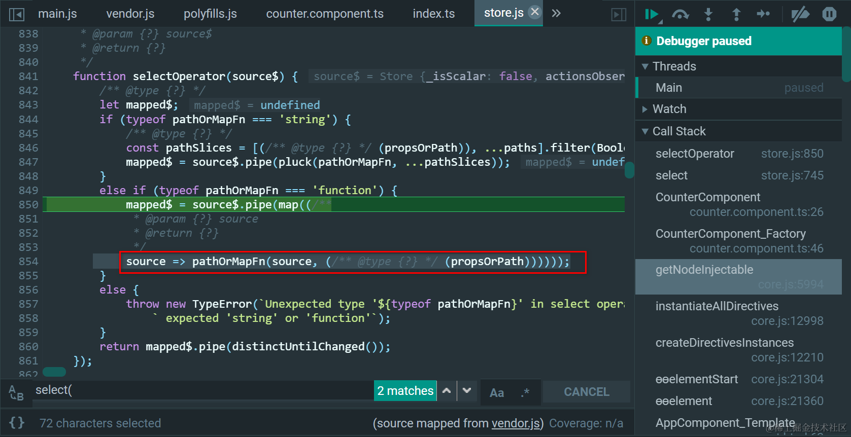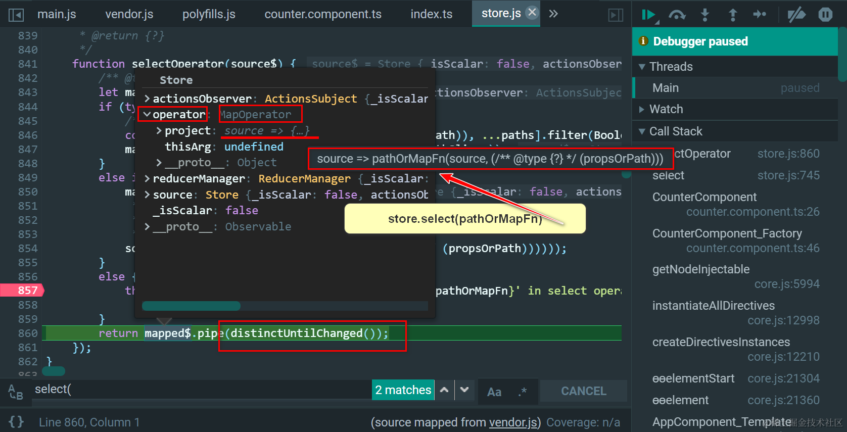 这个source$就是store.select(fromExample.getCounterCounter);里的store: