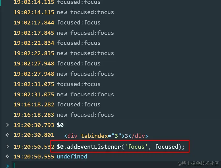 $0.addEventListener('focus', focused);