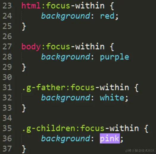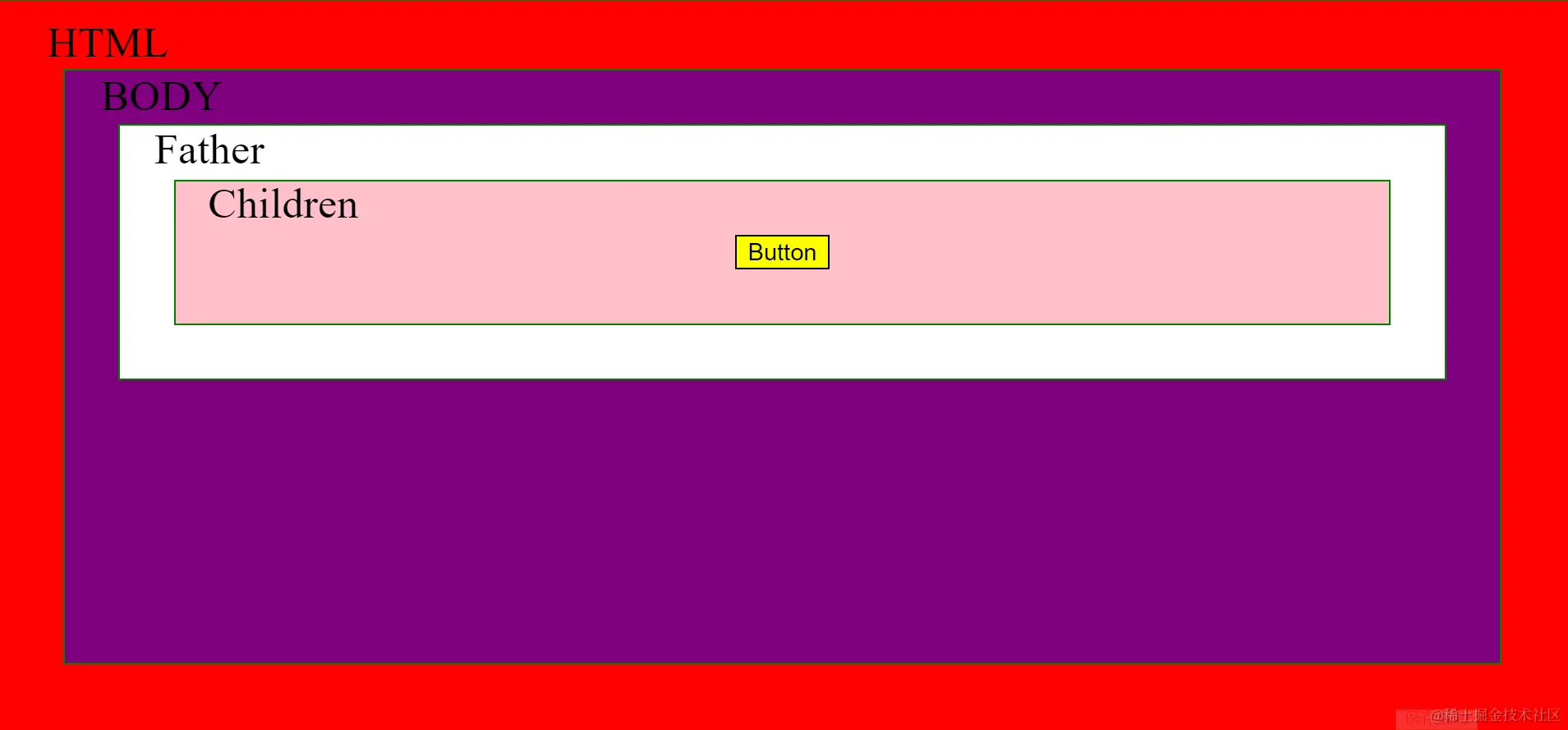 children变成粉色,father变成白色,body变成紫色,html变成红色
