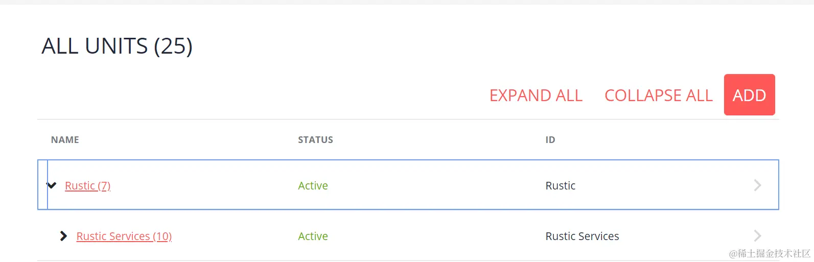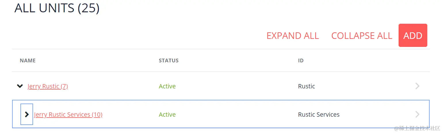 Button标签结合自定义的cx-icon标签一起,二者共同实现一个三角箭头。点击后,会展开和收拢该Org Unit的子Unit列表。
