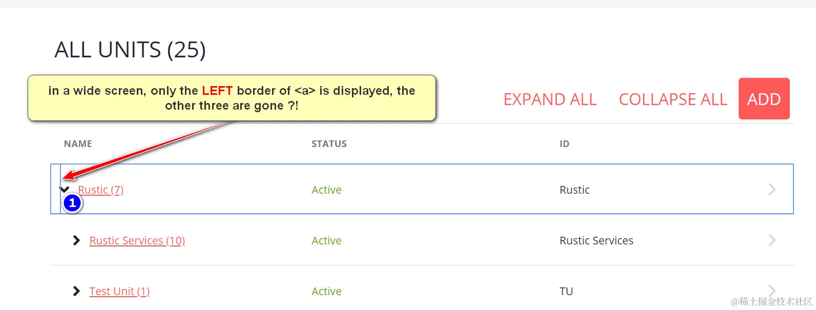 然而我观察了现有的tr轮廓线,发现有计算逻辑参与在里面,而a标签并没有。简单评估了一下,如果要让a标签在不同的屏幕尺寸下的轮廓线和tr标签的轮廓线始终保持重合,代价太大,得不偿失,所以我放弃了。