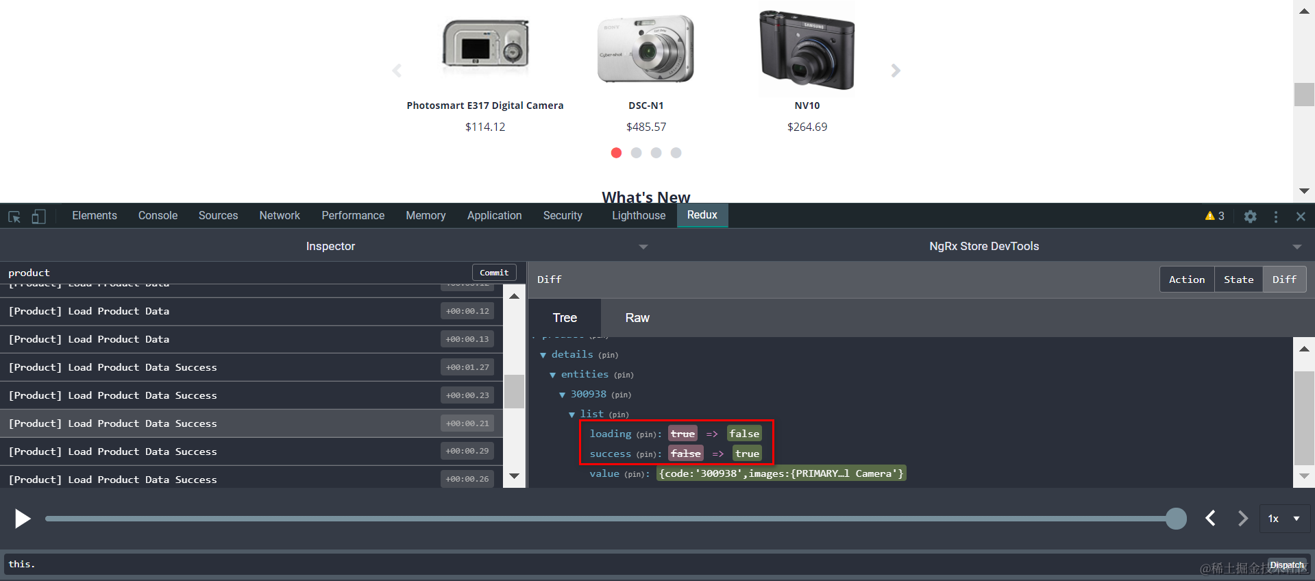 Load Product Data时,state里的loading标志位是true: