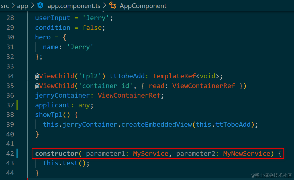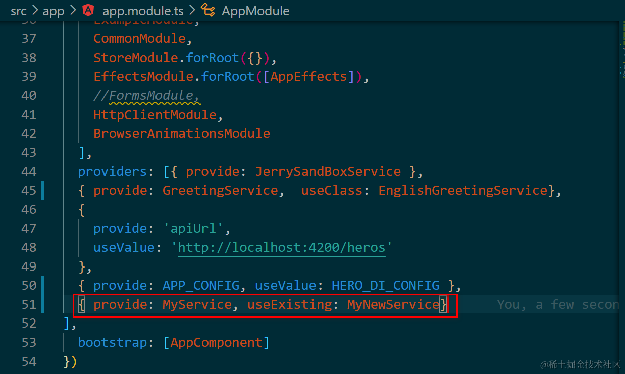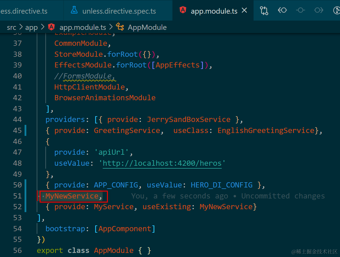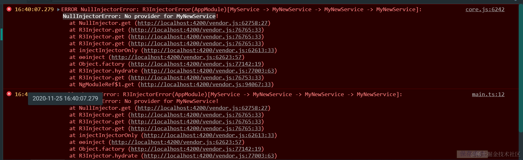 发现上图的MyNewService在app.module.ts里缺少了providers定义。