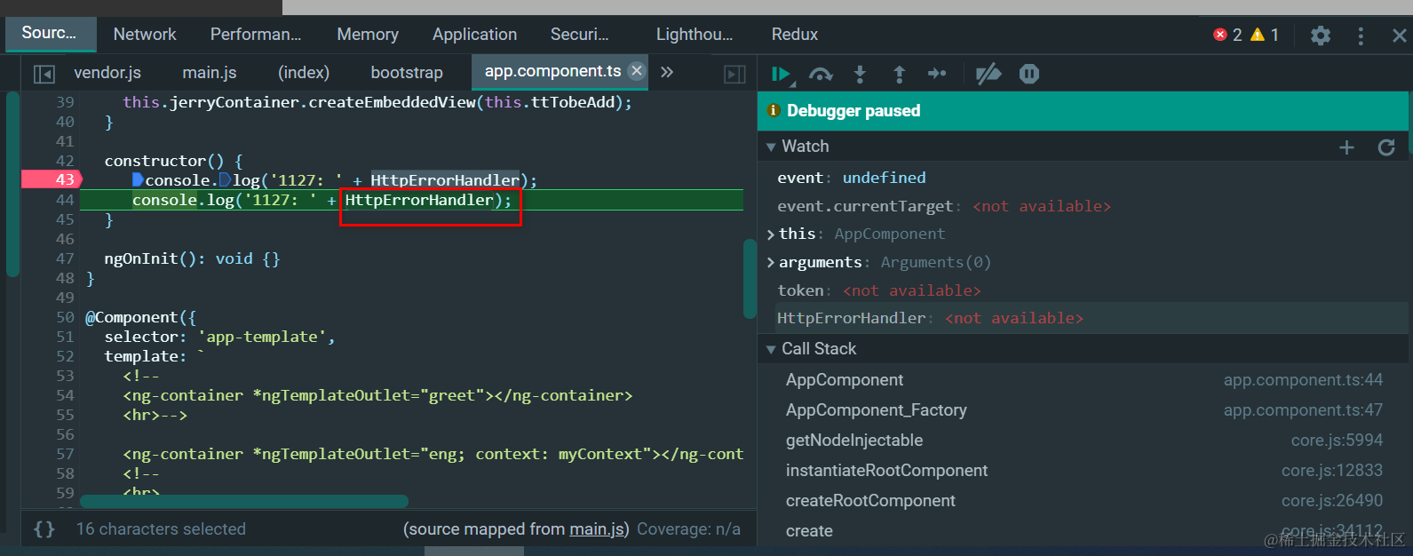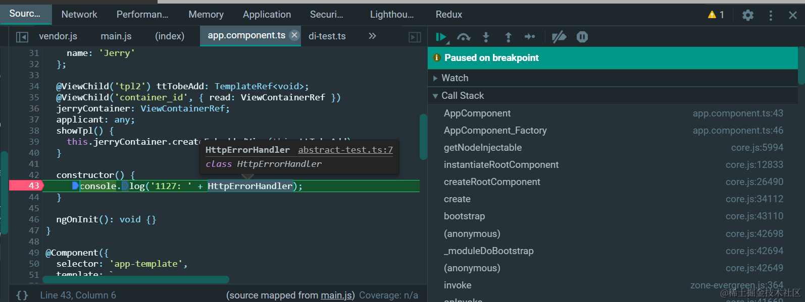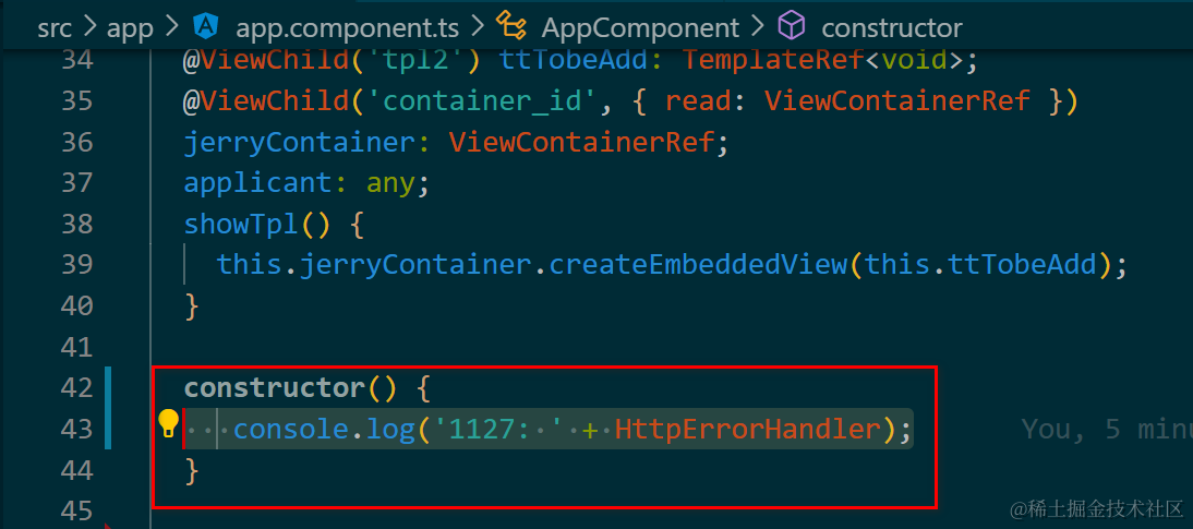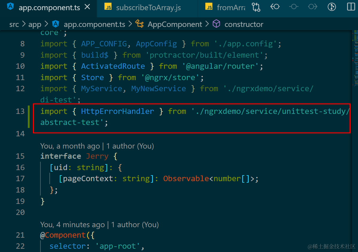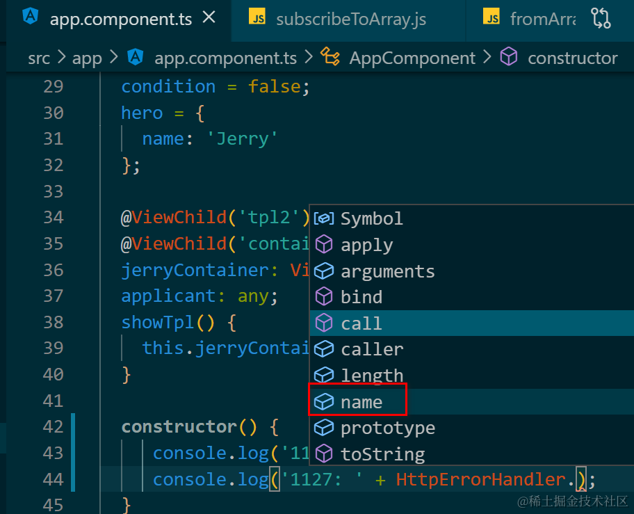 Angular应用里使用import直接导入到应用代码里的class,在运行时的表现 已注销 2021-04-26 67 阅读1分钟 如图: import { HttpErrorHandler } from './ngrxdemo/service/unittest-study/abstract-test'; 直接打印: 打印出的是这个类的源代码: 很有意思的是,在Chrome开发者工具里无法直接显示这个从import里导出的“变量”: 这个import导出的变量有且仅有这些属性可供打印输出: 更多Jerry的原创文章,尽在:“汪子熙”: