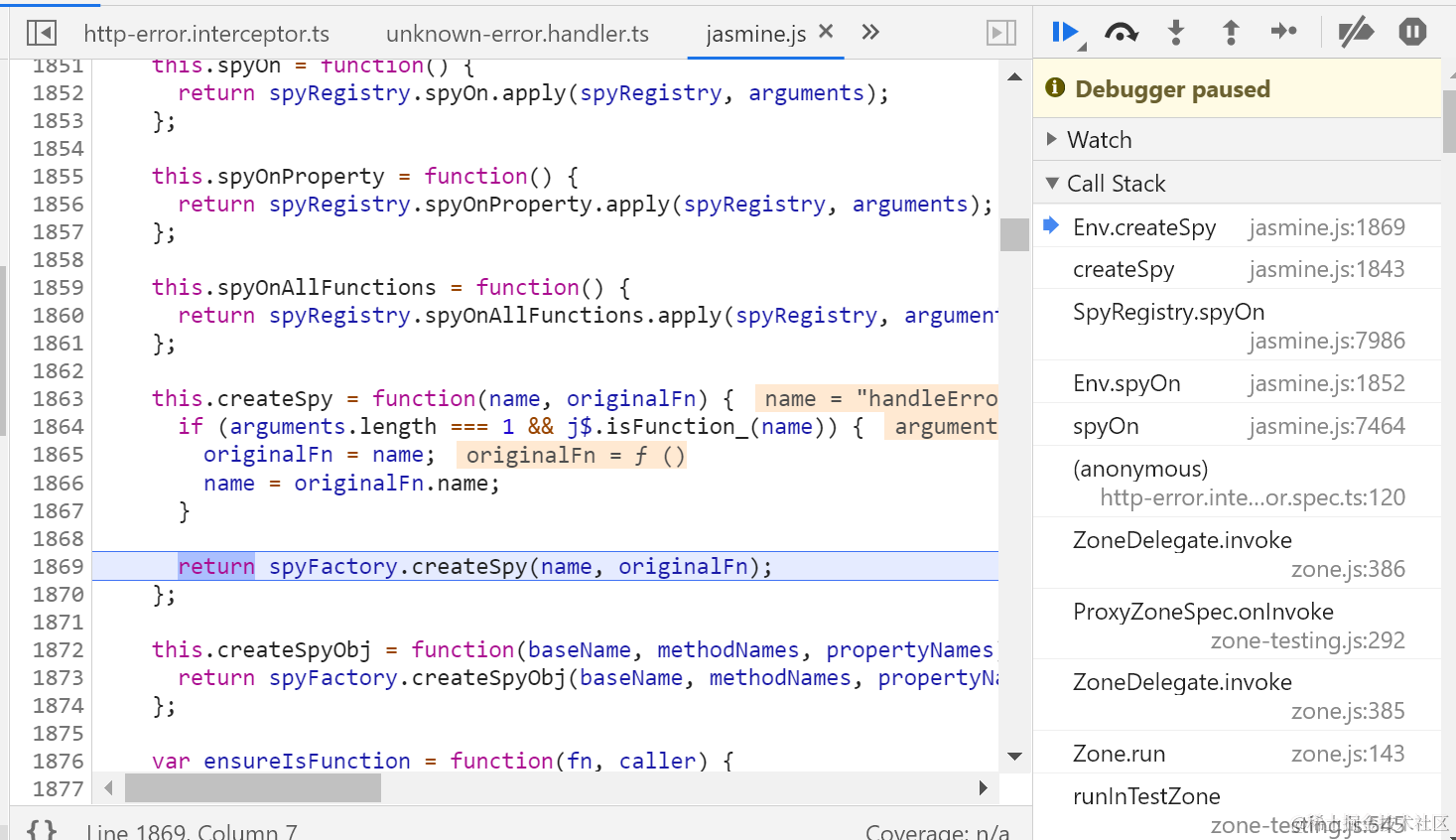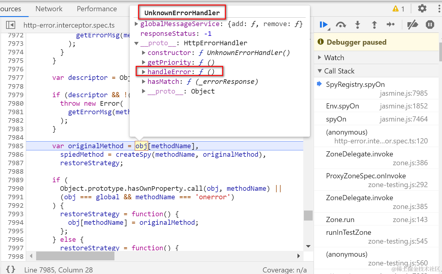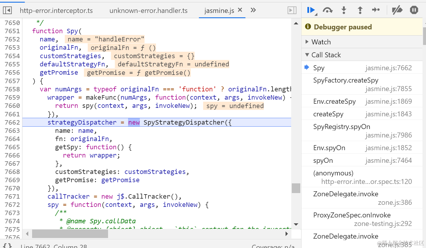 准备针对handler的handleError方法创建spy: