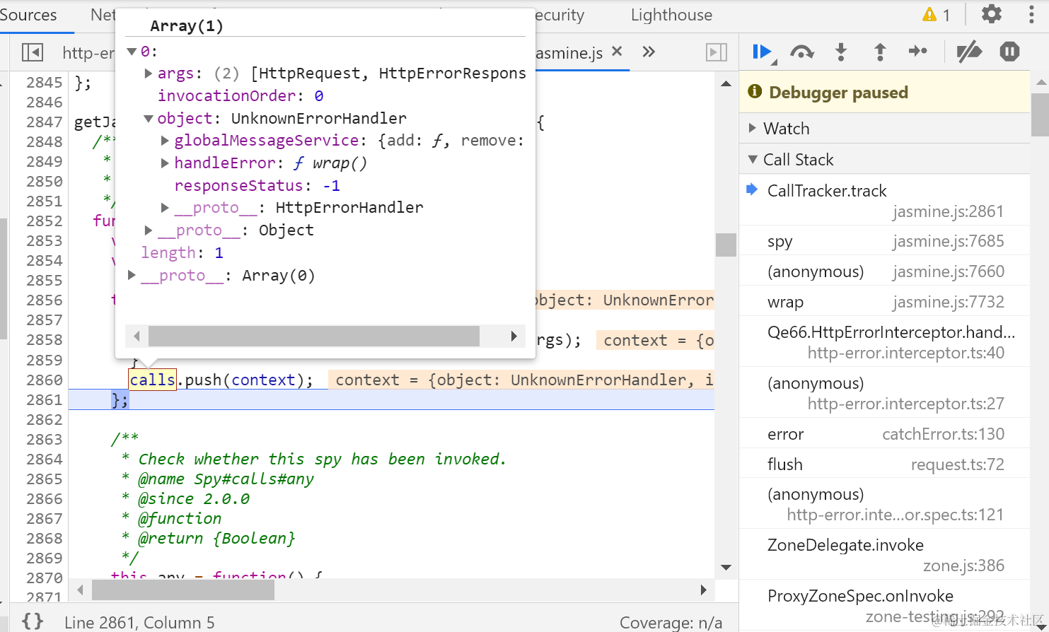 所有被spy之后的方法调用都记录在calls里: