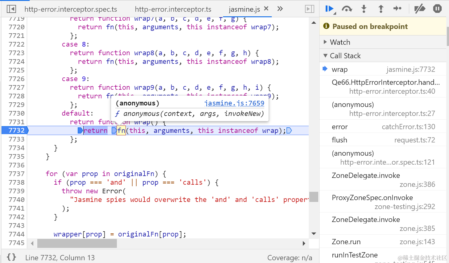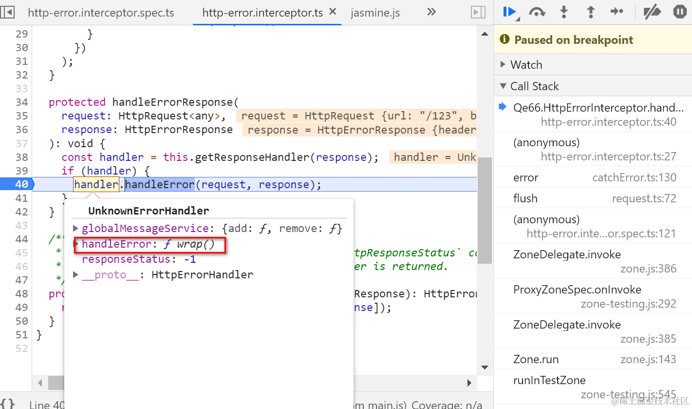 如下图所示,handler的handleError方法已经被替换成了wrapper:
