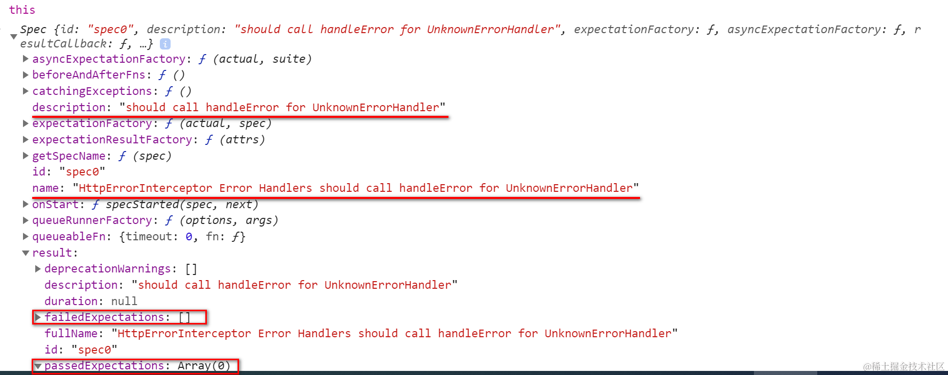 spec变量里包含了执行通过的expectation和执行失败的expectation: