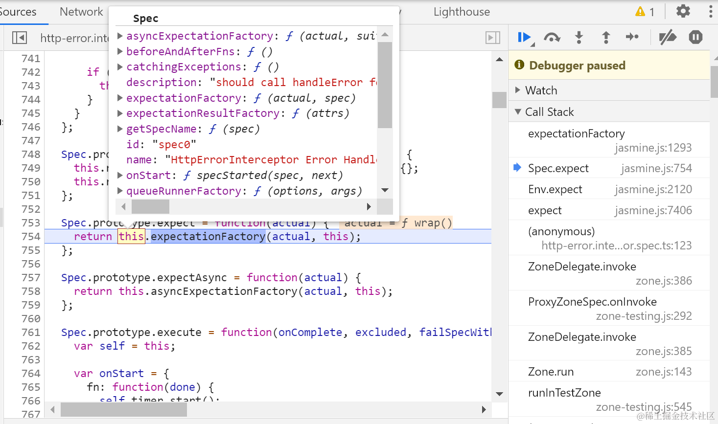 spec内部的expect方法调用:调用env.expect: