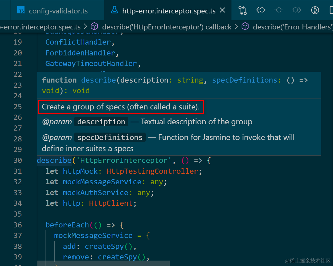 通过describe函数创建一个suite,即spec的集合: