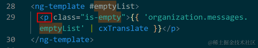 host元素p被ng-template包裹: