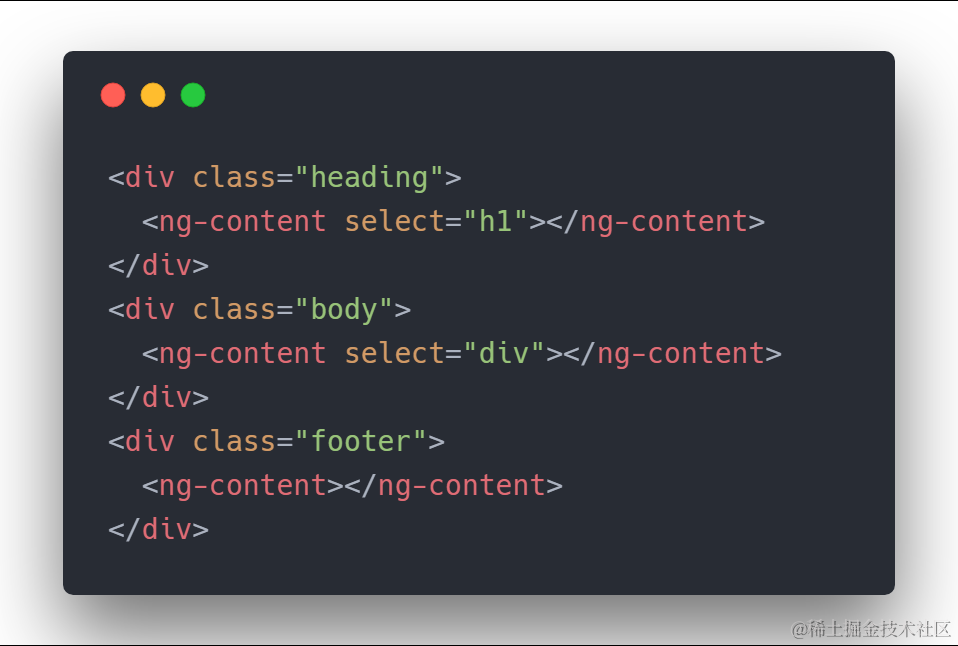 ng-content 的select 属性其实和 css 选择器的工作方式类似,用于帮助 Angular 找到投影内容在 DOM 中的正确放置位置。