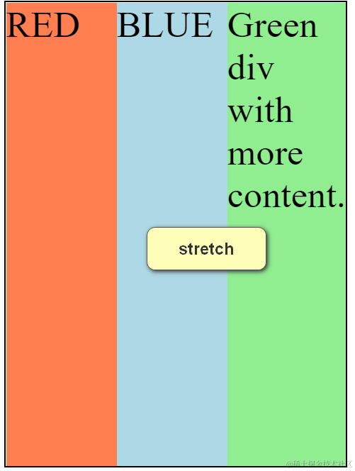 如果指定侧轴大小的属性值为’auto’,则其值会使项目的边距盒的尺寸尽可能接近所在行的尺寸,但同时会遵照’min/max-width/height’属性的限制。 - center: 元素位于容器的中心。