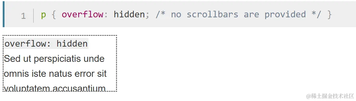 - hidden: 超过范围的区域无法显示,也没有scrollbars