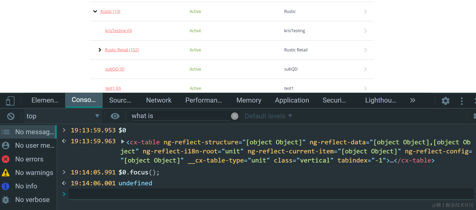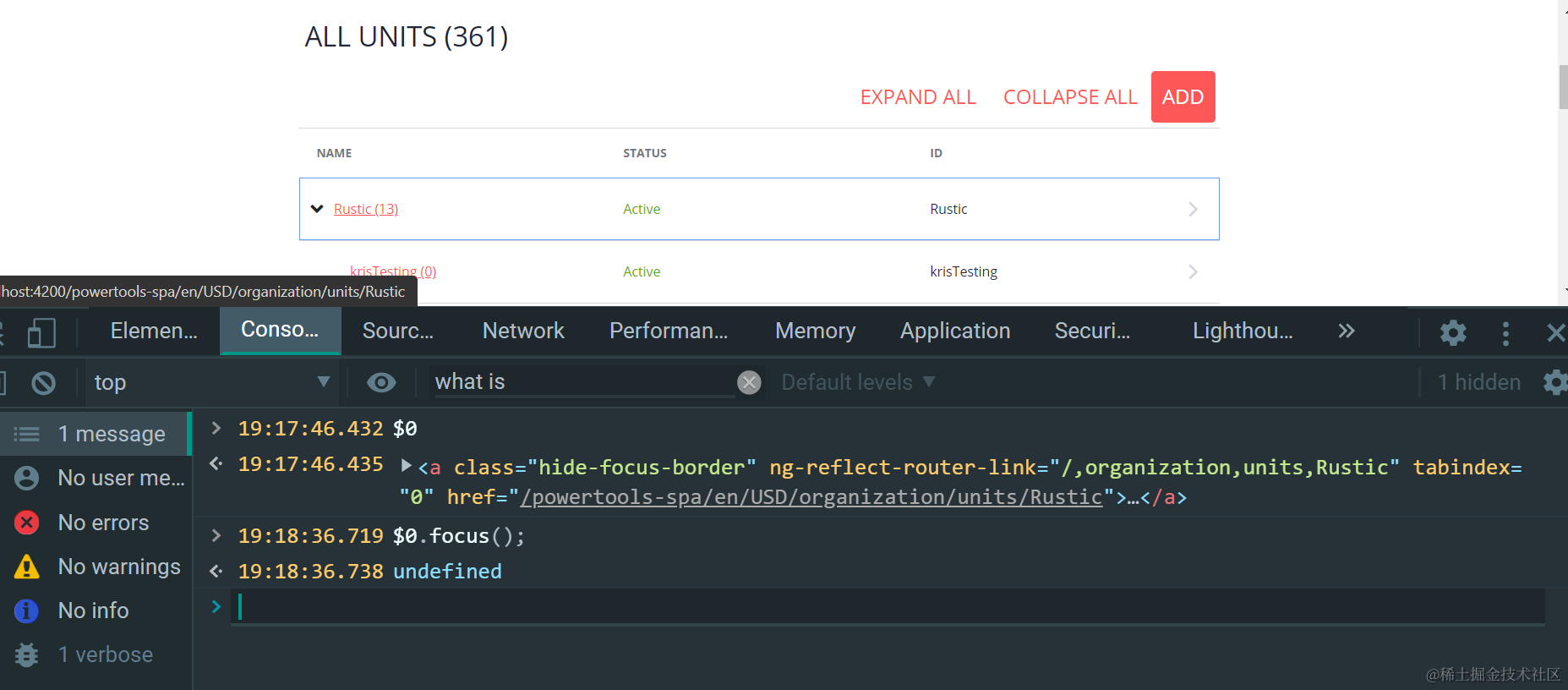 手动调用cx-table.focus和a.focus方法的效果比较 已注销 2021-04-26 219 阅读1分钟 http://localhost:4200/powertools-spa/en/USD/organization/units 直接刷新上面的url: first focusable返回的是cx-table节点: 对这个自定义cx-table标签,执行原生的focus方法,没有任何效果。 但是对a标签的引用调用focus方法时,可以达到focus的效果: 如图:看到了focus的蓝色方框 更多Jerry的原创文章,尽在:“汪子熙”: