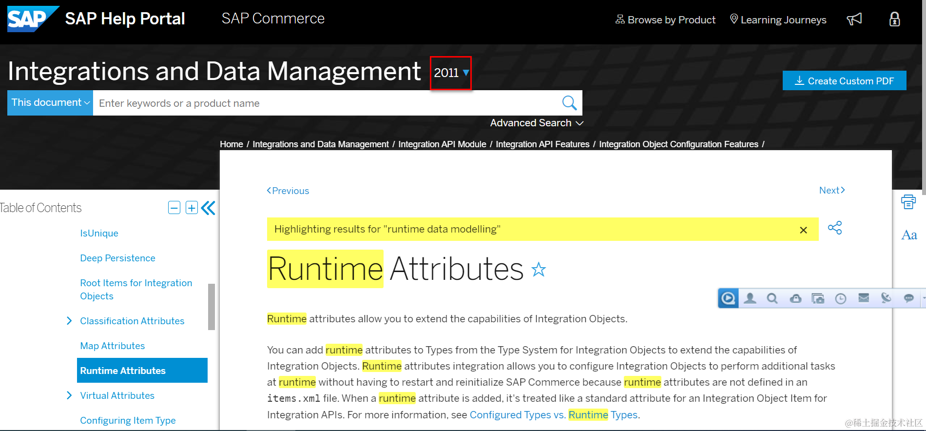 You can add runtime attributes to Types from the Type System for Integration Objects to extend the capabilities of Integration Objects. Runtime attributes integration allows you to configure Integration Objects to perform additional tasks at runtime without having to restart and reinitialize SAP Commerce because runtime attributes are not defined in an items.xml file.