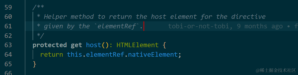 巧用Angular项目的get设置Angular class属性访问的别名 已注销 2021-04-26 102 阅读1分钟 以this.host为例: 实现位置: /** * Helper method to return the host element for the directive * given by the `elementRef`. */ protected get host(): HTMLElement { return this.elementRef.nativeElement; } 更多Jerry的原创文章,尽在:“汪子熙”: