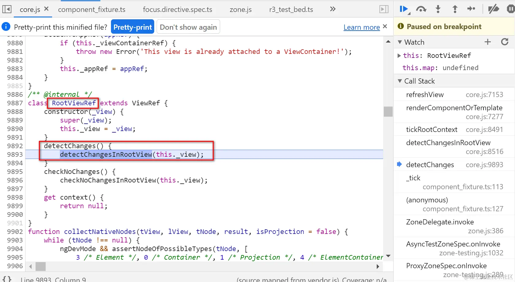 RootViewRef,执行view方面的change detect: