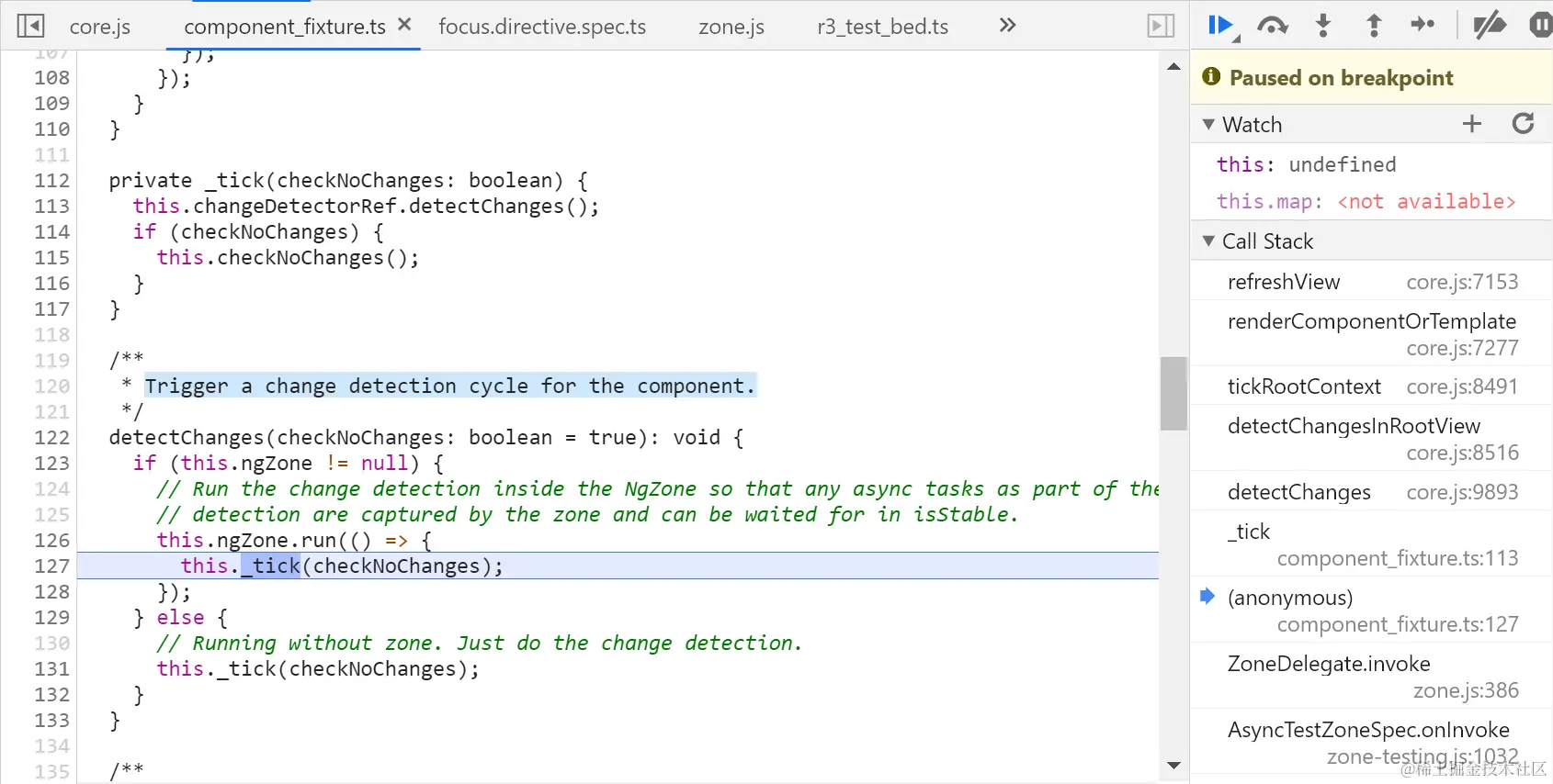 fixture的类型是component-fixture,里面会调用_tick方法: