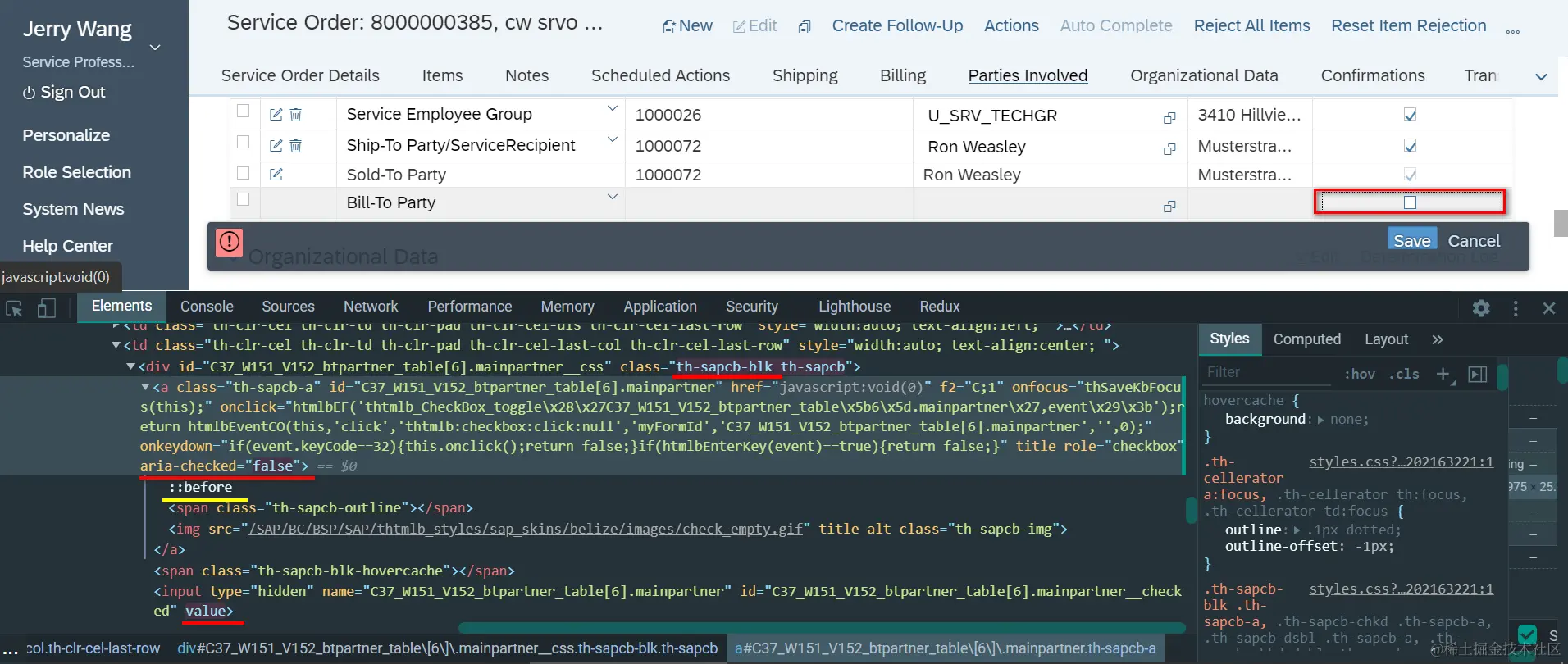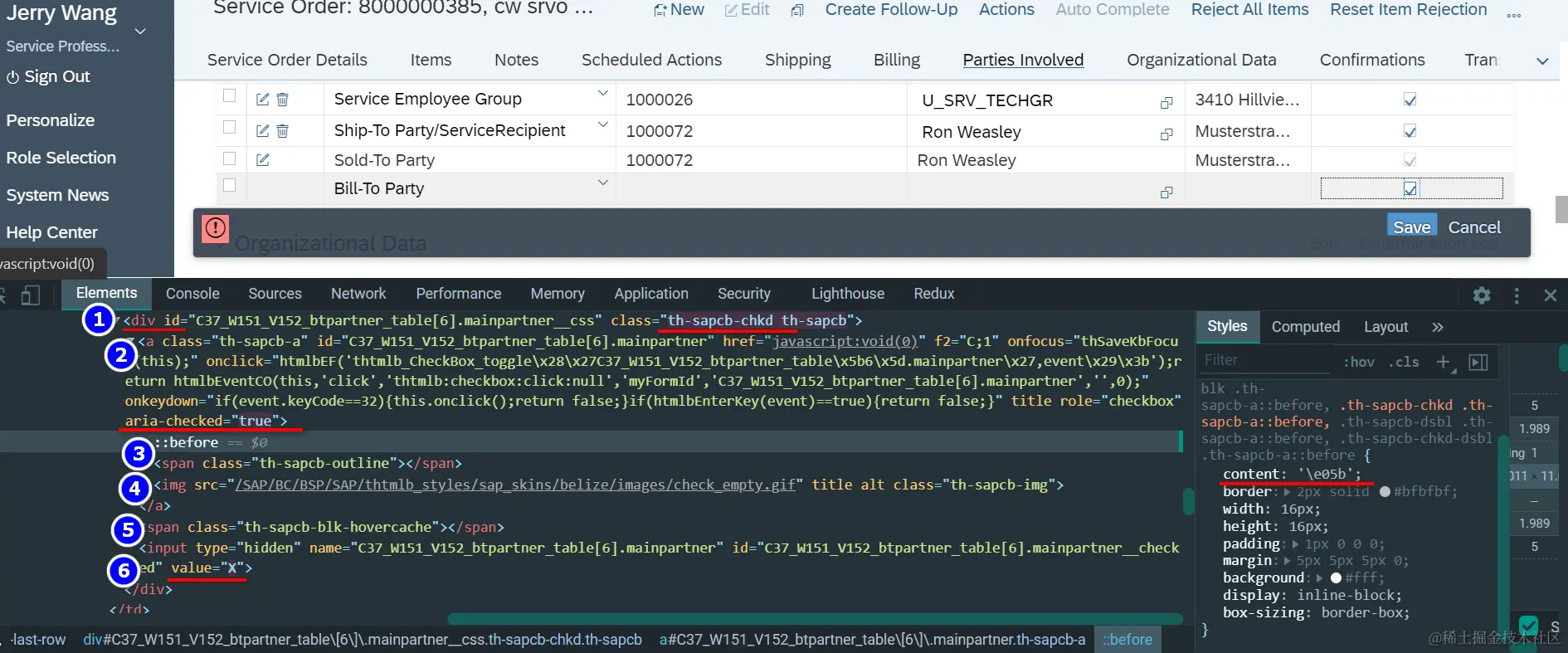 同SAP CRM一样,SAP C4C最终渲染出的HTML页面里,也是由多个HTML元素协同工作,形成最后的Checkbox视觉效果。