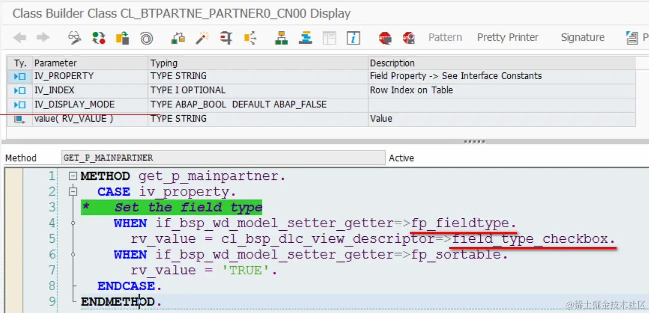 当然,SAP CRM的开发人员,是不会直接编写原生的HTML代码的。在SAP CRM里需要将一个控件定义成Checkbox,只需要实现这个控件绑定的模型节点字段的GET_P方法:
