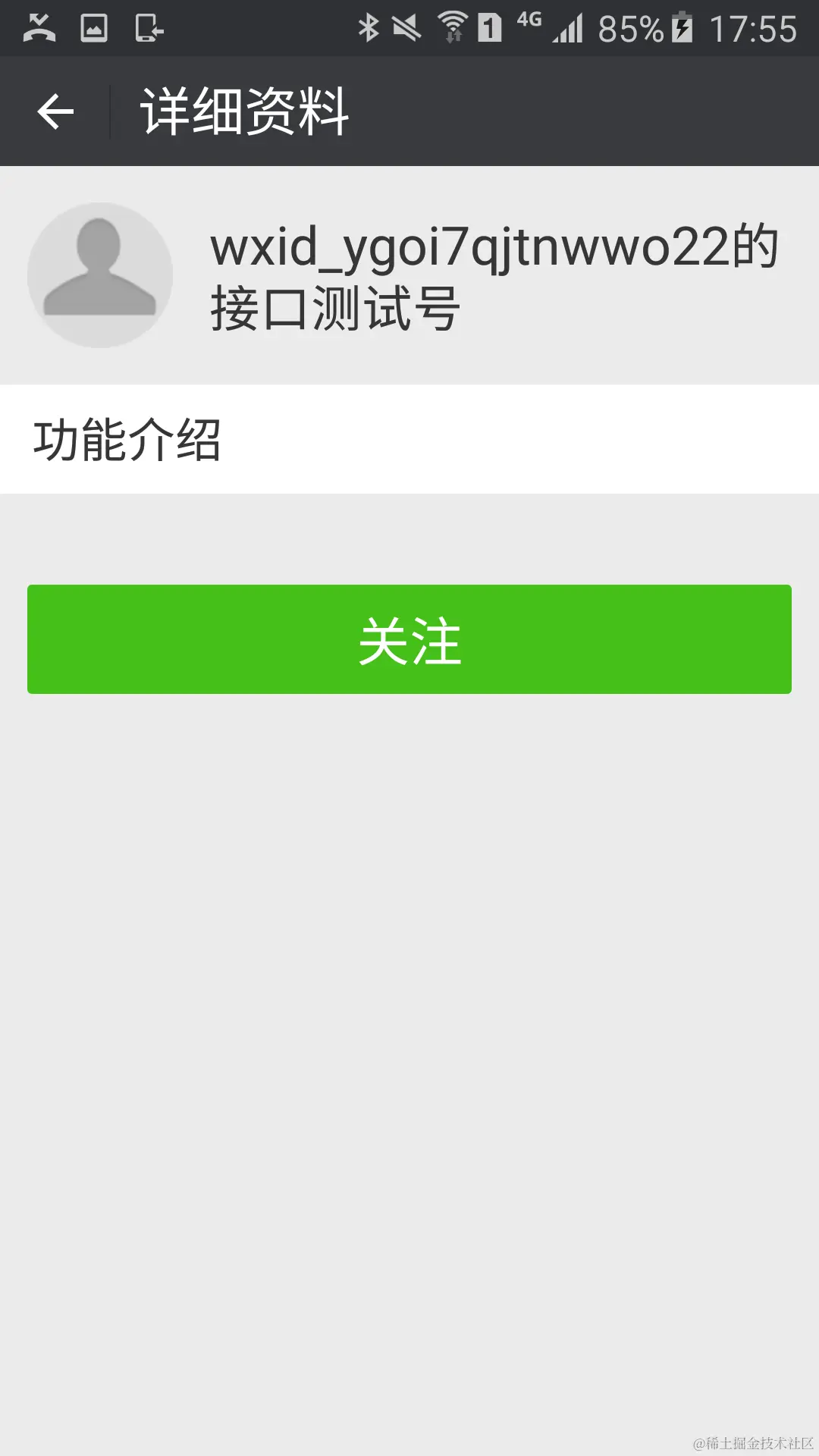 微信用户点击“关注”按钮,关注了某微信公众号之后: