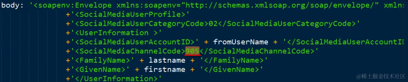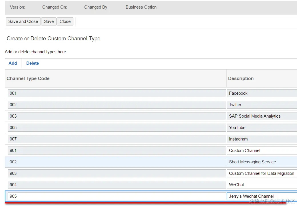 在第二步创建Social Media Profile时,调用C4C API传入的输入负载里,将ChannelCode硬编码成之前在C4C系统里新建的自定义Channel的Type Code:905