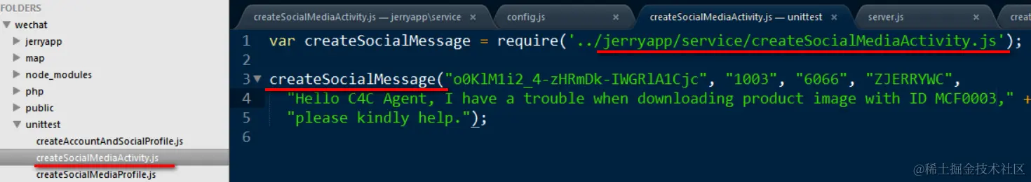 微信用户关注了公众号之后,发送文本消息给该公众号,微信消息服务器调用createSocialMediaActivity.js里的函数createSocialMessage, 在C4C系统里创建一条新的Social Media Message.