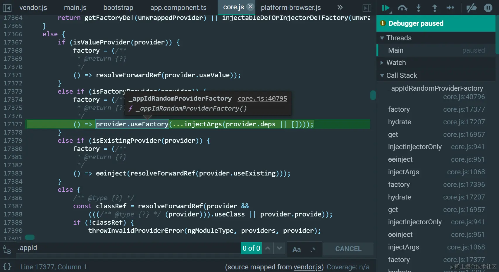 provider.useFactory里就能看到生成appId的工厂函数了: