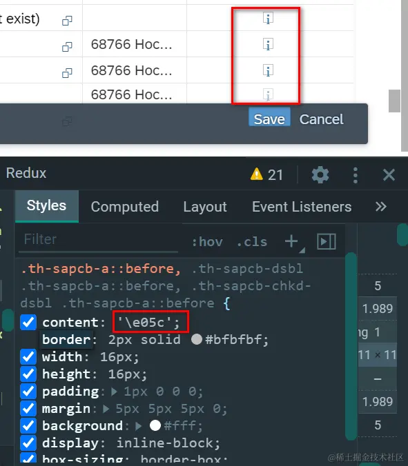 我们试着在Chrome开发者工具里将这个content属性值改一改。’\e05c’代表hint,一个小感叹号: