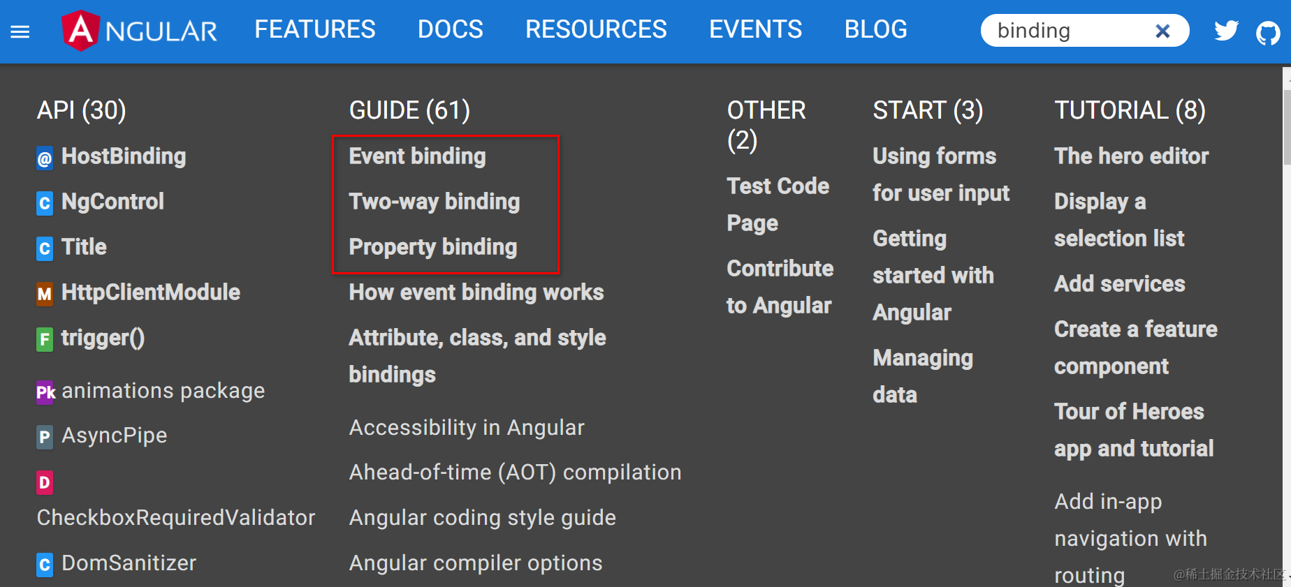 Angular这三种绑定方式的使用语法如下图所示: