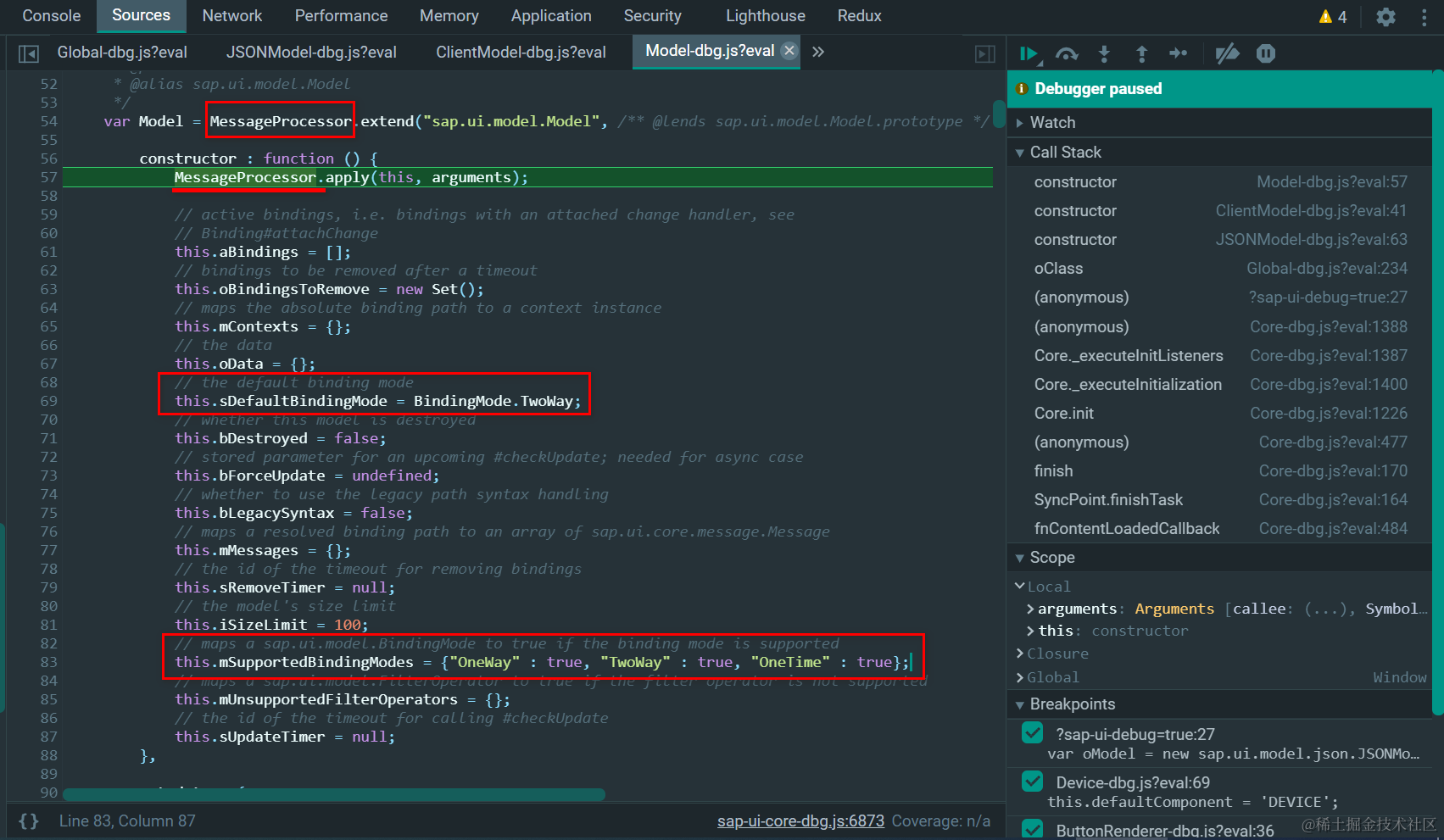 Jerry 前一篇文章 深入学习SAP UI5框架代码系列之六:SAP UI5控件数据绑定的实现原理,曾经展示过这张源代码截图,第83行包含了SAP UI5支持的三种数据绑定模式: