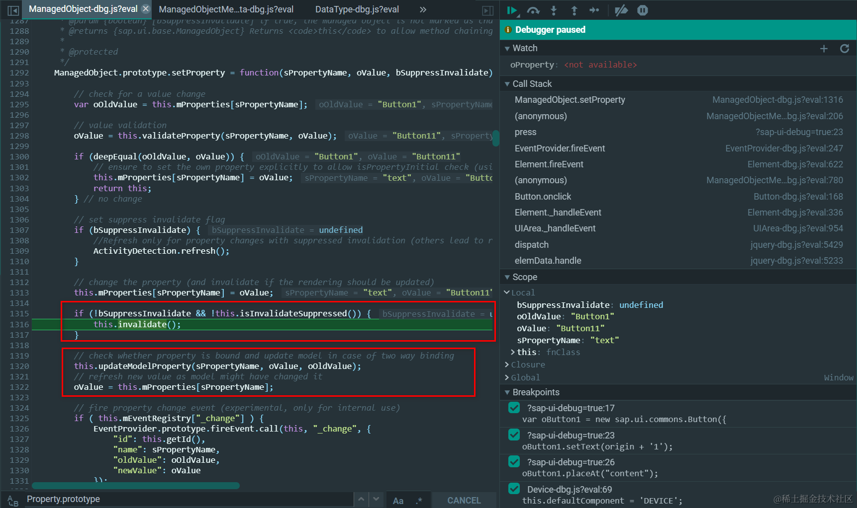 下图展示的setProperty方法,在Jerry之前的文章 深入学习SAP UI5框架代码系列之五:SAP UI5控件的实例数据修改和读取逻辑 里有详细介绍。