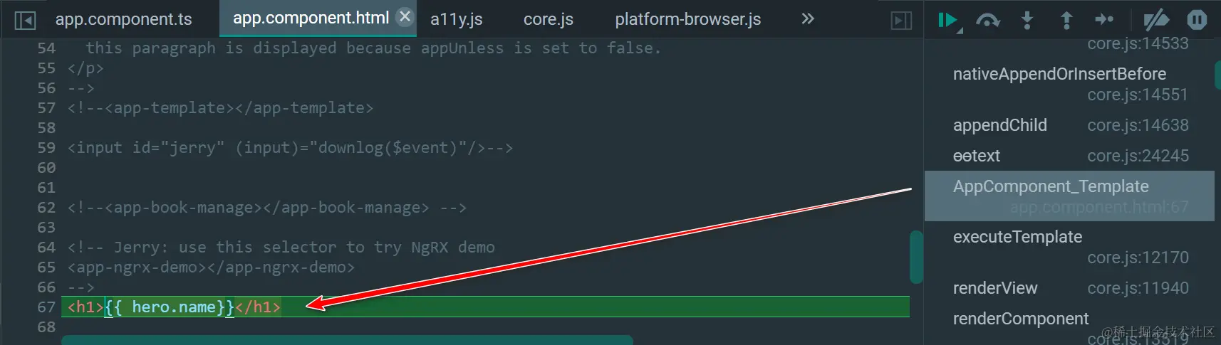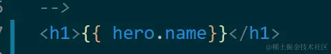 Component的template页面就一行语句,利用interpolation显示hero属性的name字段: