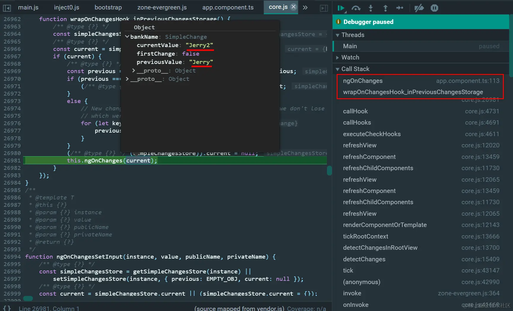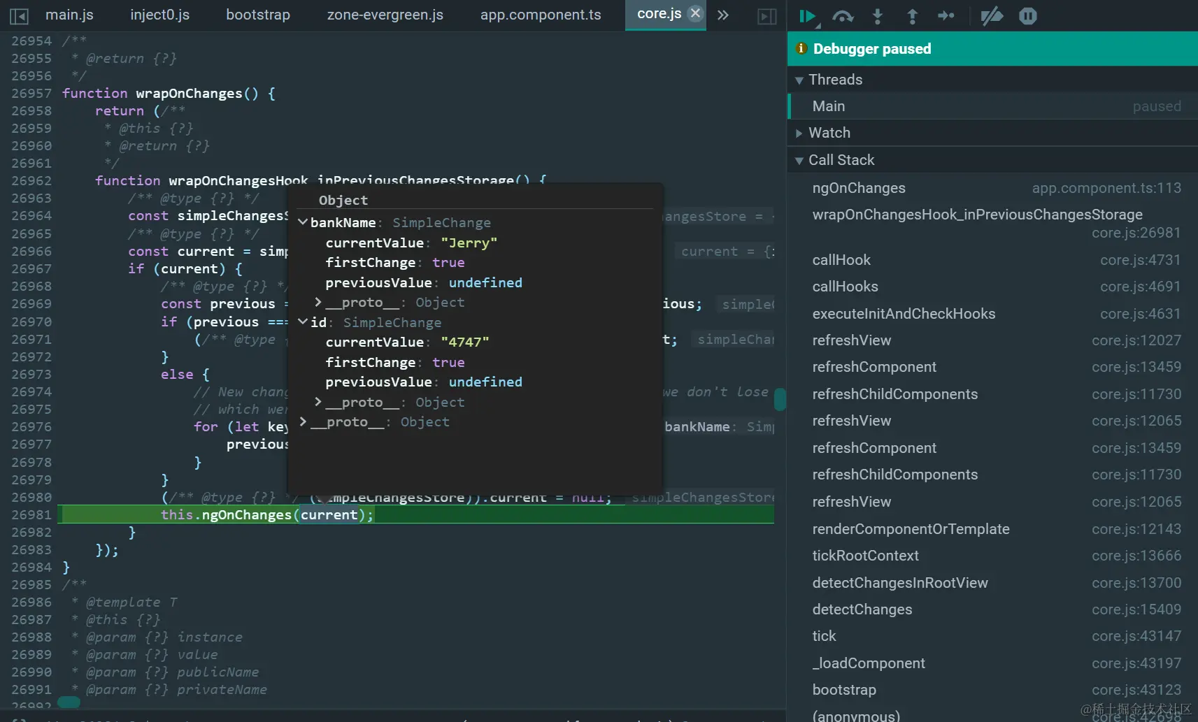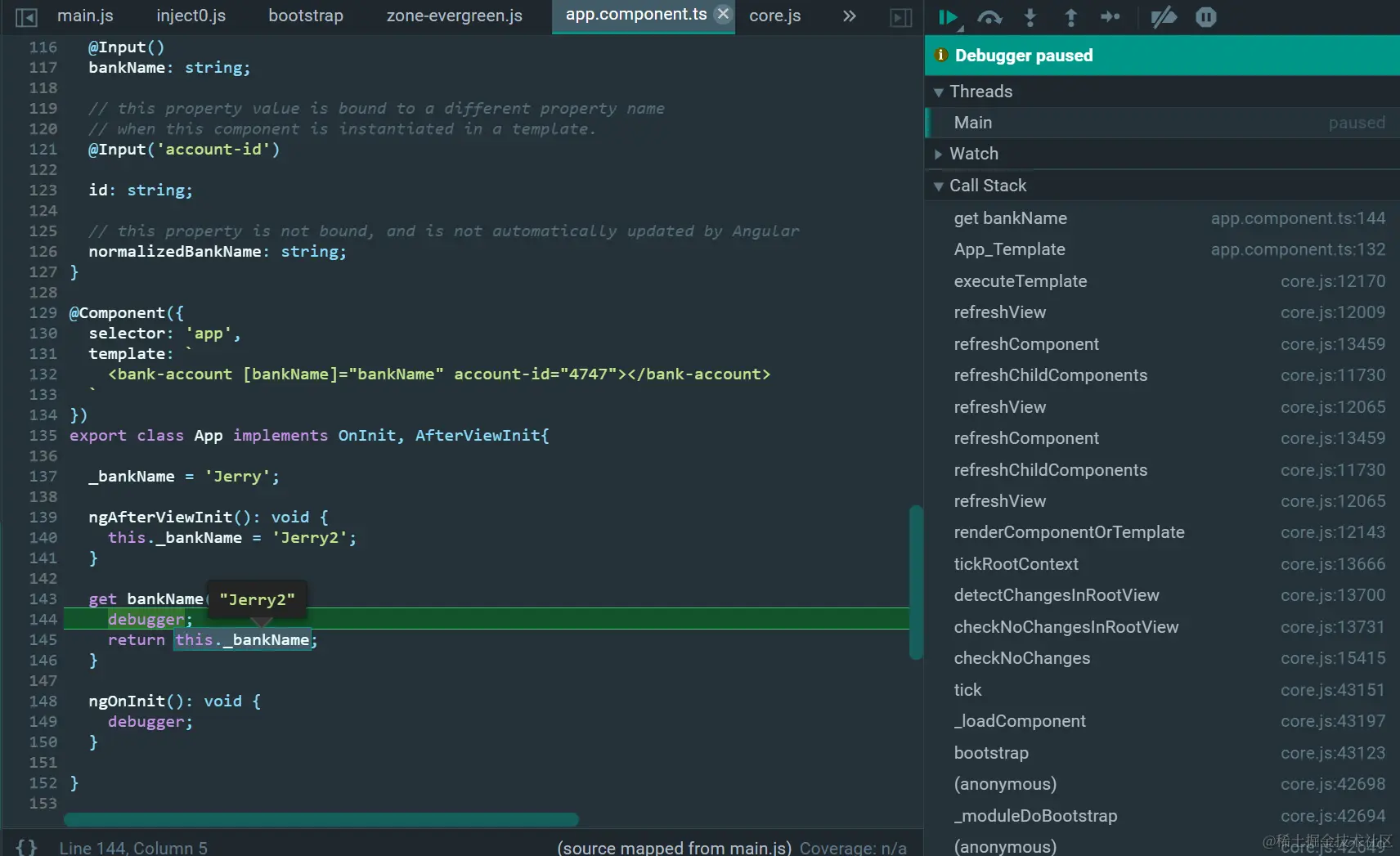 父组件的bankName,在OnInit和OnAfterViewInit时都会变化,这也会触发子组件的ngOnChange接口: