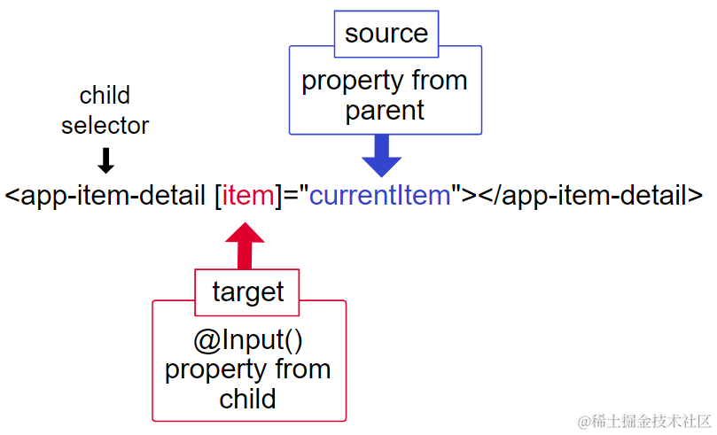 Input decorator只能用在Angular class字段里, 用于指定元数据,将class字段指定成input property.