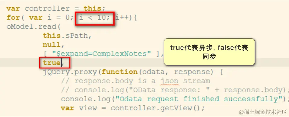 为了验证这个猜测是否正确,我写了一段简单的测试代码:在一个for循环里使用SAP UI5 OData Model read API,发出10个OData请求: