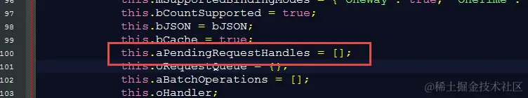 在SAP UI5的OData框架的ODataModel.js中,维护了一个HTTP请求的pending列表,其内维护了已经发送,但是还没有收到响应的request对象: