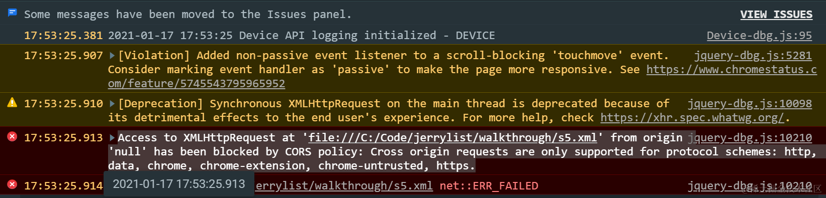 Access to XMLHttpRequest at ‘file:///C:/Code/jerrylist/walkthrough/s5.xml’ from origin ‘null’ has been blocked by CORS policy: Cross origin requests are only supported for protocol schemes: http, data, chrome, chrome-extension, chrome-untrusted, https.