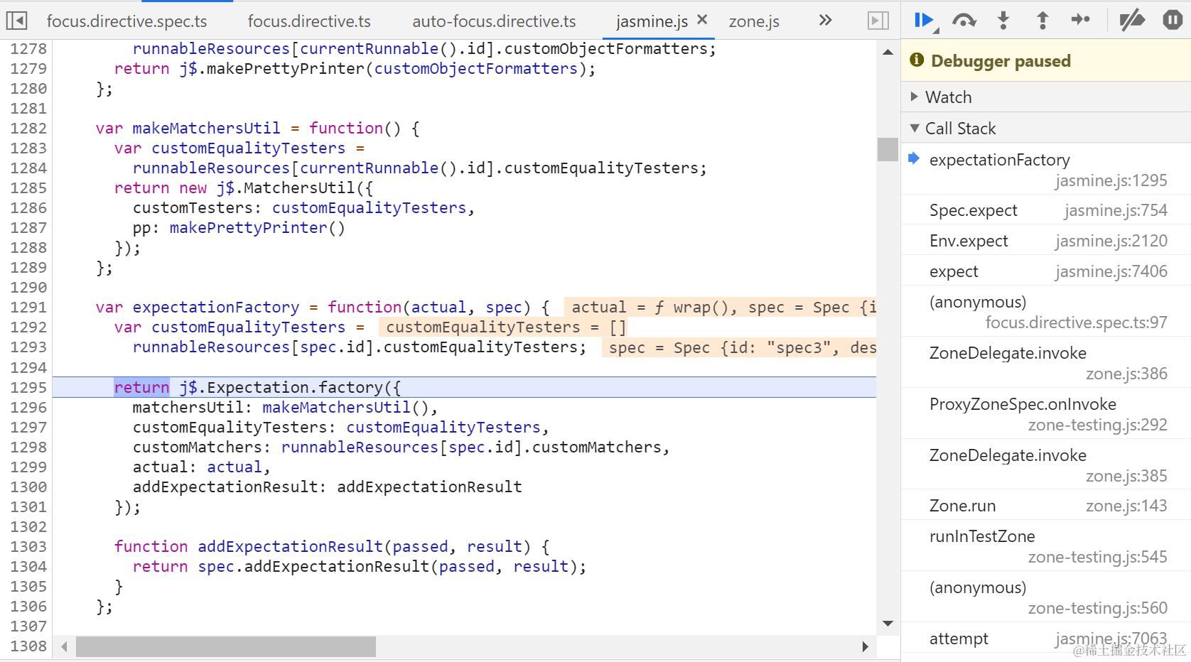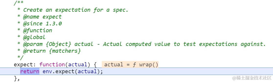 expect方法:基于传入的spec创建一个expectation. 在我们的例子里,传入的spec就是keyboardFocusService.findFirstFocusable被spy之后的版本: