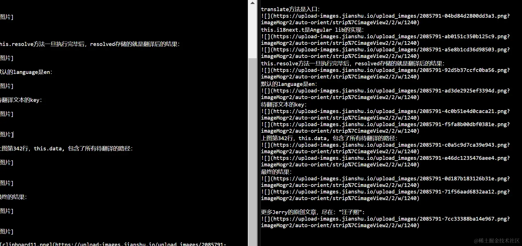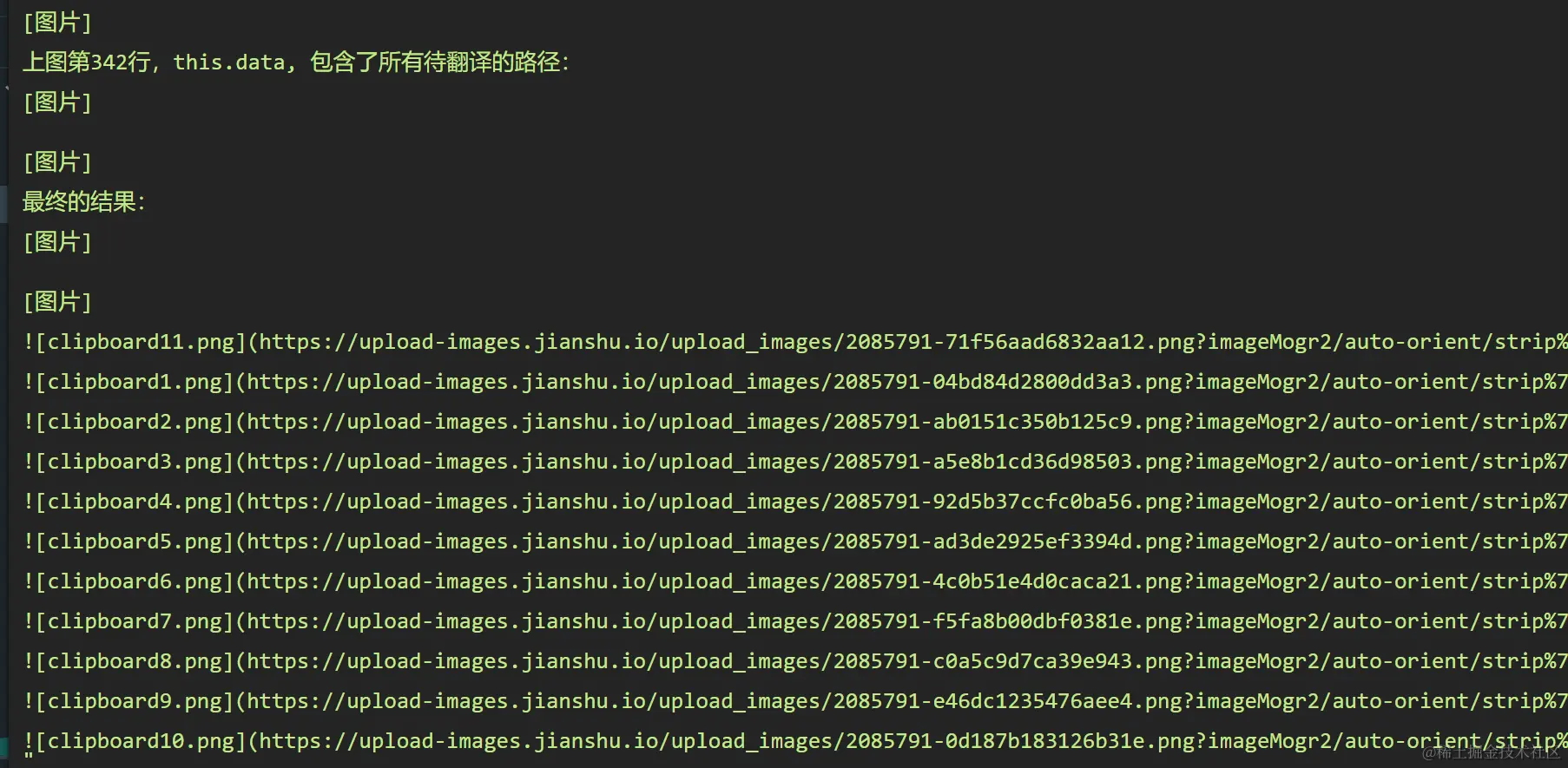 则最后转换成的简书源代码,没有多余的换行符,视觉效果很不好:
