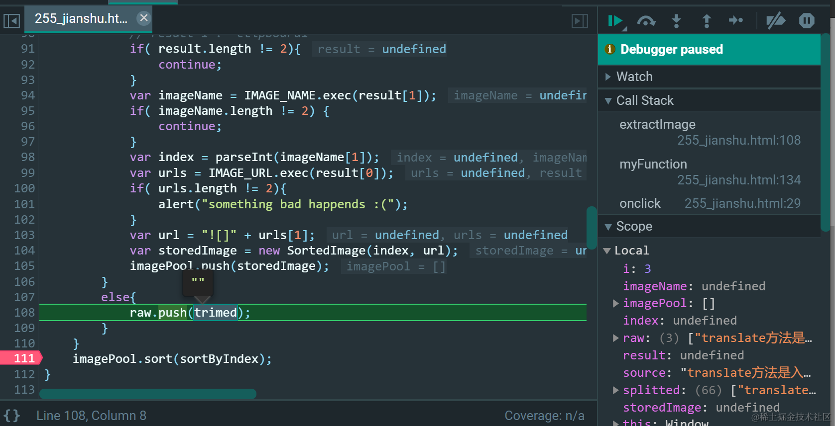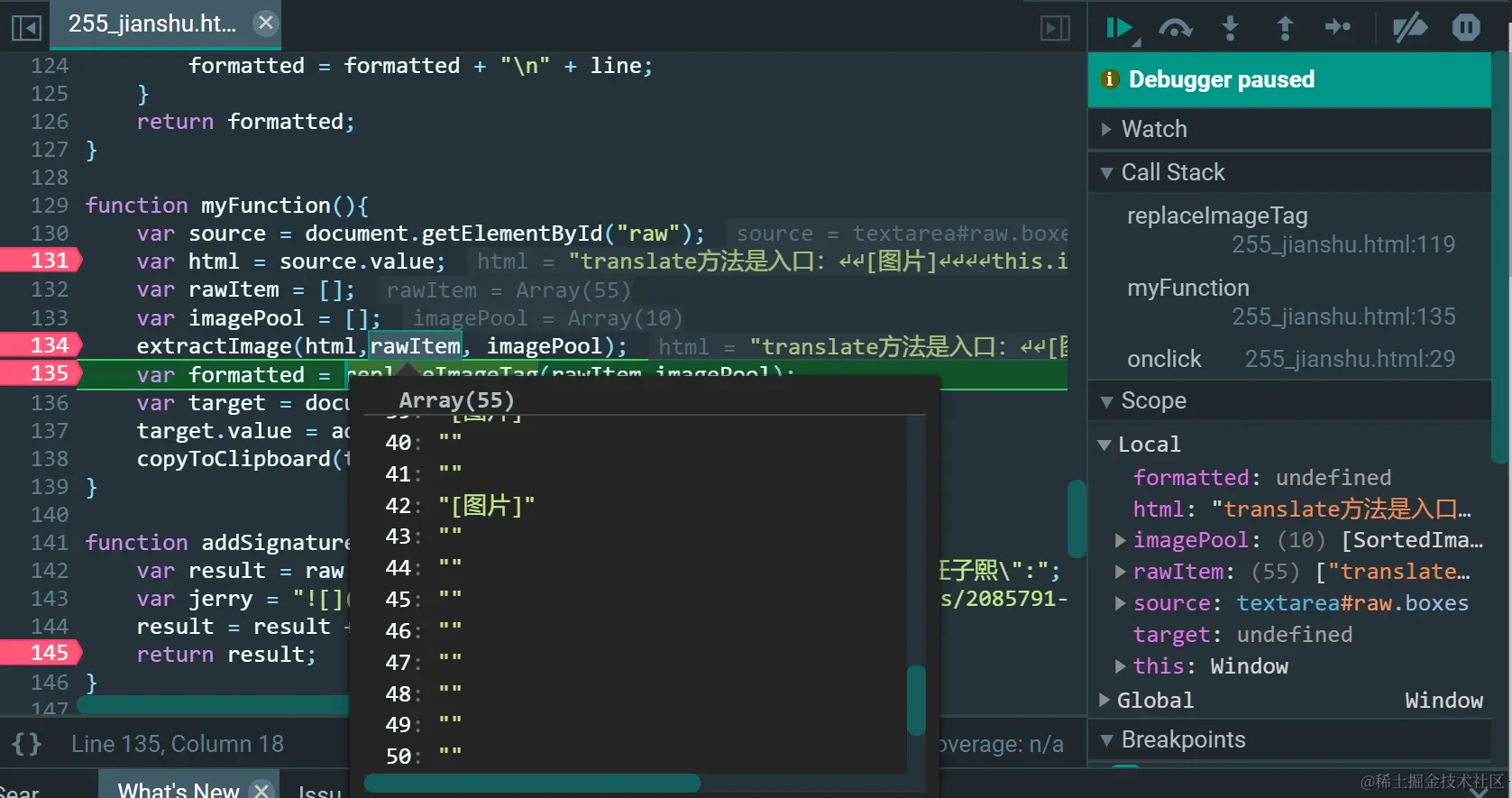 查看rawItem数组,发现了大量的"""", 随后这些""尾部都会被附上换行符号/n: