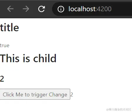 则虽然我在ngOnInit里将this.parentContent改成了2,但是页面仍然没有刷新,仍然是1: