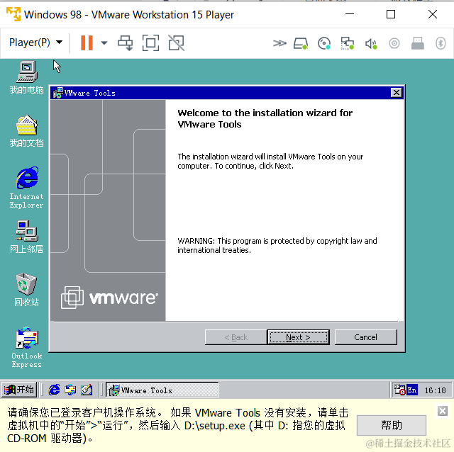 客户虚拟机:windows 98