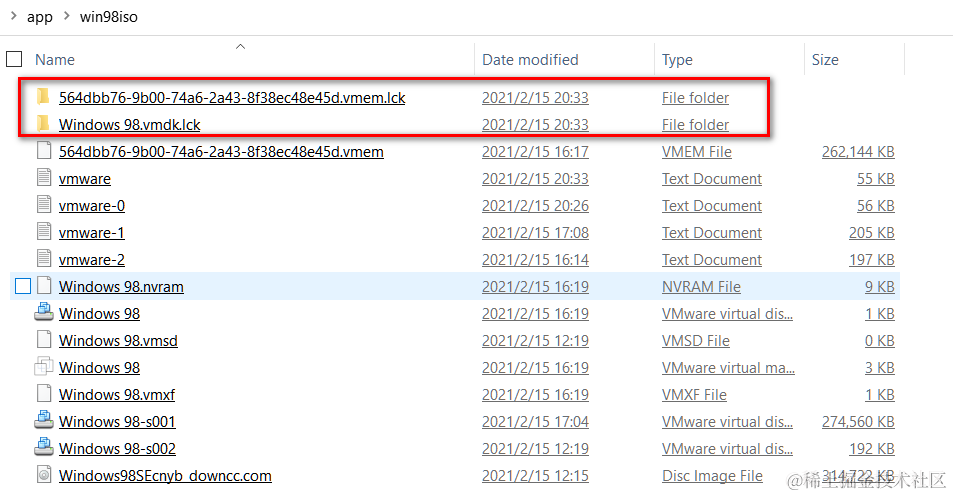 VMWare player启动虚拟机出错 - 模块Disk启动失败 已注销 2021-04-26 269 阅读1分钟 开机时出错: The process cannot access the file because another process has locked a portion of the file 打不开磁盘“C:\app\win98iso\Windows 98.vmdk”或它所依赖的某个快照磁盘。 解决方案:删除下图高亮的两个文件夹: 问题解决: 更多Jerry的原创文章,尽在:“汪子熙”: