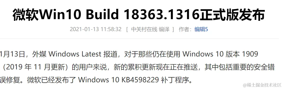 关于windows的version和OS build version 已注销 2021-04-26 93 阅读1分钟 2021年2月16日牛年大年初五,我使用的Windows10版本号为1909. 而os build版本号为 18363.1316,这个build于2021年1月13日发布,包含了重要的安全错误修复。 更多Jerry的原创文章,尽在:“汪子熙”: