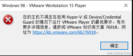 您的主机不满足在启用Hyper-V 或Device/Credential Guard的情况下运行VMware player的最低要求。